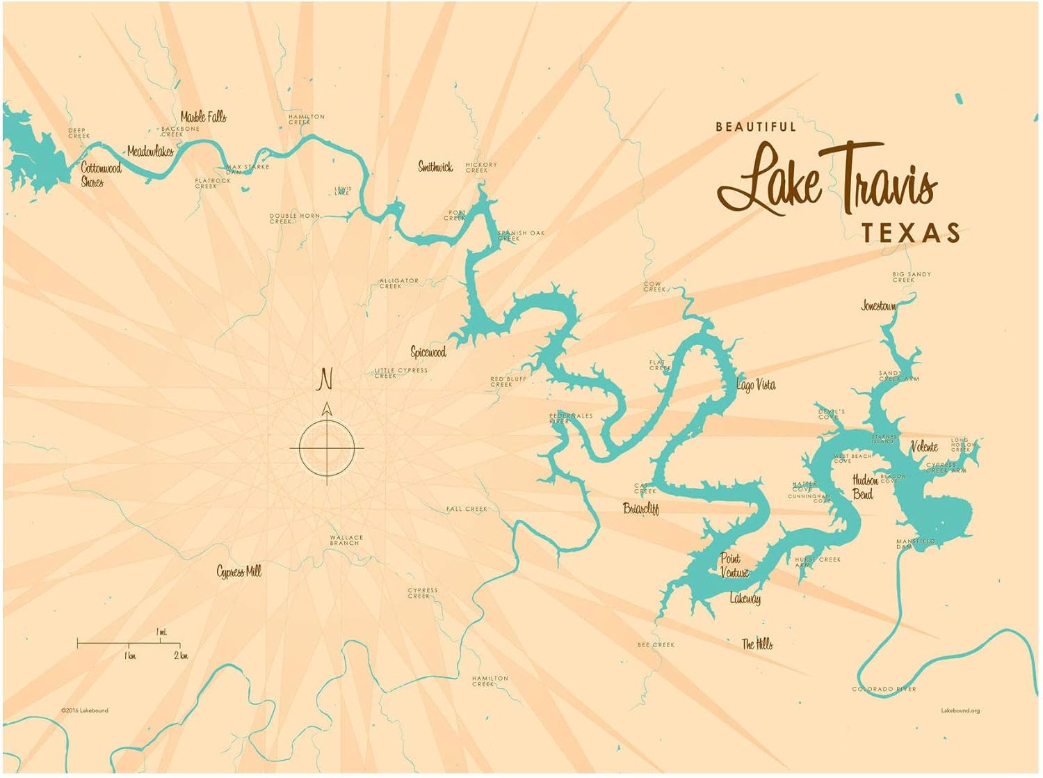 Amazon.com: Lake Travis Texas Map Giclee Art Print Poster by lake travis texas map | Lake travis, Island lake, Lake.